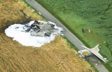 圖文:俯瞰飛機(jī)殘骸 墜機(jī)現(xiàn)場(chǎng)慘不忍睹 2002年07月02日 19:58 德國(guó)當(dāng)?shù)貢r(shí)間7月1日夜(北京時(shí)間2日晨),一架DHL公司的波音757貨機(jī)和俄羅斯巴什基爾航空公司的圖-154客機(jī)在德國(guó)巴登-符騰堡州于伯林根鎮(zhèn)上空相撞并墜毀,至少已造成71人死亡,其中包括52名兒童。圖為俯瞰散落在地上的飛機(jī)殘骸。(春風(fēng))