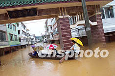 圖:廣東封開縣洪水受災(zāi)人數(shù)達六萬 2002年07月03日 19:44 ![]() 受上游廣西合面獅水庫泄洪的影響,廣東封開縣賀江水位急劇上漲,賀江沿線八個鄉(xiāng)鎮(zhèn)受災(zāi)人數(shù)達六萬三千多,直接經(jīng)濟損失在一億元人民幣以上。該縣南豐鎮(zhèn)洪水超警戒水位四米,最深水位超過六米,二樓以下的房屋被淹,街上到處可見汽車被淹在水中,大街小巷汪洋一片。作者:黃耀輝