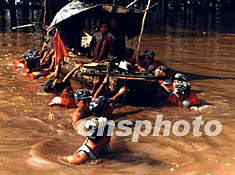 圖:廣東茂名二十萬人受水災(zāi)海軍雨夜救人 2002年07月04日 18:10 ![]() 廣東茂名地區(qū)連降暴雨,二十萬人受災(zāi),其中數(shù)千人受洪水圍困。南海艦隊數(shù)百名海軍陸戰(zhàn)隊官兵雨夜馳援,展開搶險救災(zāi)工作,安全轉(zhuǎn)移災(zāi)民一千多人。圖為官兵們在救護(hù)受災(zāi)群眾。作者:牛韓