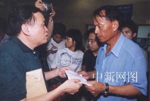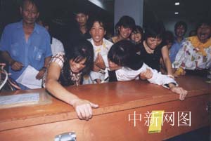 圖文:在以色列遇難的兩名福建勞工遺體運抵福州 2002年08月07日 22:43 ![]() 圖為福建中福公司副總經(jīng)理林炎,向死難者許恒勇、李斌的家屬發(fā)送慰問金。中新社記者 劉可耕 攝 ![]() 圖為許恒勇的親屬哭倒在他的棺木上。中新社記者 劉可耕 攝 ![]() 圖為李斌的一雙兒女披麻戴孝迎接父親棺木。中新社記者 劉可耕 攝 中新社福州八月七日電 (記者 陳悅)今晚七時許,從香港起飛的MU五七八航班運載著在上月以色列特拉維夫爆炸案中遇難的福建勞工許恒勇和李斌的遺體在福州長樂機場降落。七時半,等候多時的親屬們迎來了遺體,隨即護送靈柩返回福州平潭故鄉(xiāng)。 等候遺體時,兩人的親屬都沉浸在巨大的悲痛中。李斌和許恒勇的妻子自出發(fā)起就痛哭不絕,此時已聲音嘶啞;許恒勇的妹妹則突然昏厥過去,良久才蘇醒。許恒勇的叔叔介紹,兩人的親屬是今日早些時候冒著暴雨從平潭啟程的,許家家境不好,許恒勇是家中的頂梁柱,他的去世給家人帶來巨大打擊,他十三歲的大兒子受刺激精神恍惚,一度住院。李斌的親屬亦介紹,李斌的岳父聽到噩耗后不久就去世了。 七時半許,靈柩被運出機場貨運出口,家屬們護送棺木運上車。據(jù)稱,兩人原所屬的福建中福公司亦來機場接靈柩并為兩人辦理相關(guān)手續(xù)。該公司副總經(jīng)理林炎向兩人送上該公司職員募集的捐款。林炎介紹,以色列還將派官員及保險公司職員來北京商討賠償事宜。據(jù)悉,二人雖均屬合法入境,但許恒勇已“跳槽”離開原打工單位,而李斌屬超期非法滯留,故二人獲得的賠償標準將無法完全比照在“四·一二”耶路撒冷爆炸案中遇難的福建勞工獲得的以方賠償。(完)