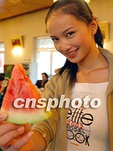 ![]() 正在西藏參加姍拉娜2002世界精英模特大賽中國選拔賽的模特選手,對拉薩的高原氣候不太適應(yīng),餐桌上的西瓜成為佳麗們的搶手貨。錢興強(qiáng) 攝