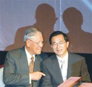 陳水扁與李登輝同臺(tái)現(xiàn)身 一唱一和鼓吹“臺(tái)獨(dú)” 2002年08月12日 09:49 ![]() 李登輝(左)與陳水扁交頭接耳(臺(tái)灣聯(lián)合報(bào)圖) 中新網(wǎng)香港8月12日消息:臺(tái)北訊,陳水扁與李登輝昨天先后在“臺(tái)獨(dú)”黨派“臺(tái)灣團(tuán)結(jié)聯(lián)盟”一周年“黨慶”活動(dòng)中放話,再放“臺(tái)獨(dú)”厥詞,而且兩人致詞內(nèi)容明顯相互呼應(yīng)。 在“臺(tái)聯(lián)黨”的“特別安排”下,陳水扁與李登輝兩人繼陳氏拋出“一邊一國(guó)論”之后,首度公開同臺(tái)亮相。 陳水扁在發(fā)言時(shí)未提所謂“一邊一國(guó)”論,但又抹黑中國(guó)大陸對(duì)臺(tái)灣“武力威脅”和“國(guó)際打壓”,并鼓動(dòng)說:“對(duì)的信念絕不放棄,對(duì)的路要繼續(xù)走! 陳水扁還用閩南語說,“不能被人唬得驚驚到”,要“歡喜看未來”。 李登輝隨后發(fā)言公開支持陳水扁,聲稱“百分之百”支持所謂“一邊一國(guó)”論,并指此論為“事實(shí)的表述”。這名“臺(tái)聯(lián)黨”的“精神導(dǎo)師”更鼓吹堅(jiān)持臺(tái)灣“主權(quán)獨(dú)立”,并指兩岸是“國(guó)與國(guó)的關(guān)系”。 李登輝呼應(yīng)陳水扁“不要被嚇倒”的說法,對(duì)“臺(tái)獨(dú)”份子放話說“免驚啦”,而且“不要被臺(tái)北‘外來政權(quán)’的大本營(yíng)與統(tǒng)派媒體嚇倒”。 島內(nèi)媒體報(bào)道指出,陳水扁與李登輝先后發(fā)言的內(nèi)容明顯相互呼應(yīng),陳水扁要“臺(tái)聯(lián)黨”在當(dāng)局“立法院”中力拼李登輝定的“指標(biāo)”說35席,李登輝則說“很不好意思,還差20多席”;陳水扁要大家不要被中國(guó)大陸“嚇倒”,李登輝則要大家“安心”。兩人不僅相偕進(jìn)場(chǎng),而且陳水扁在臺(tái)上講話時(shí),臺(tái)下的李登輝頻頻拍手。