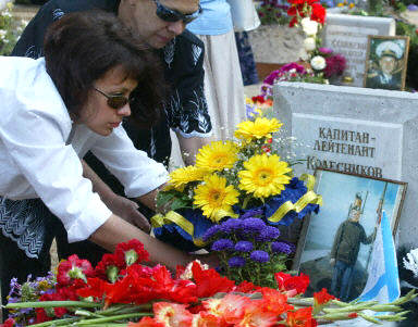 圖:莫斯科紀(jì)念"庫爾斯克號"核潛艇失事兩周年 2002年08月12日 22:36 ![]() 俄羅斯首都莫斯科12日舉行“庫爾斯克號”核潛艇失事兩周年紀(jì)念儀式,為118名死難者而設(shè)的紀(jì)念碑在莫斯科揭幕,幾十名海員及遇難者親友沉痛悼念葬身大海的海軍官兵。圖為遇難者家屬在紀(jì)念碑前擺放鮮花。