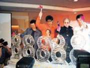 蘇永康帶笑謝歌迷:我回來了(附圖) 2002年08月14日 10:26 ![]() 歌迷的打氣信給康仔很大的鼓勵 ![]() 蘇永康主持破冰儀式寓意新開始 中新網(wǎng)香港8月14日消息:包含“重新出發(fā)”與“新專輯慶功”雙重意義的蘇永康“SUPER NICE”記者會13日下午在遠(yuǎn)東飯店舉行。 據(jù)明報(bào)報(bào)道,康仔在記者會上神情顯得輕松自在。蘇永康說,這段接受勒戒的日子里,他深深感受到家人、朋友、歌迷帶給他的愛與關(guān)懷,這是他三十多年首次如此深切的體驗(yàn)。 唱片公司特別為康仔安排“消災(zāi)解厄儀式”,希望他遠(yuǎn)離災(zāi)難、重新出發(fā)。該儀式先是過火盆,再來是噴柚子葉水,最后吃豬腳面線,另外蘇永康也擊破一座“88888”的冰雕,象征著他的唱片專輯賣得非常成功,突破8萬8千888張。整個(gè)活動尷尬的氣氛被“慶功”的意味給沖消掉了。(林佳宏)