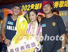 圖:歌星陳奕迅、陳冠希向新秀頒獎鼓勵 2002年08月15日 20:58 ![]() 歌星陳奕迅、陳冠希8月15日在香港出席「2002全球華人新秀歌唱大賽(香港區(qū)選拔賽)」記者會,八位新秀會上為18日晚進(jìn)行大賽作最后熱身,以勁歌熱舞展示實力,結(jié)果1號參賽者羅寶欣奪得「最佳表現(xiàn)獎」,歌星陳奕迅、陳冠希并向她頒獎鼓勵。鄧慶樂 攝