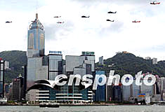 圖:香港政府飛行服務(wù)隊(duì)送別黑鷹迎新美洲豹 2002年08月15日 21:05 ![]() 香港政府飛行服務(wù)隊(duì)的九架直升機(jī)8月15日在晴朗的香港維多利亞港灣上空列隊(duì)緩緩飛行,向即將退役的黑鷹直升機(jī)致敬。該飛行隊(duì)將由新型超級(jí)美洲豹直升機(jī)替換服務(wù)了十二年的黑鷹直升機(jī)。任晨鳴 攝
