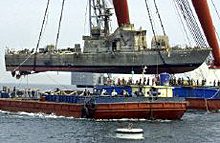 韓國打撈起一艘在黃海交火事件中沉沒的艦艇(圖)