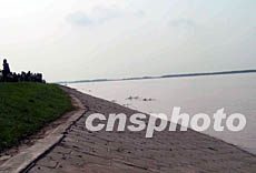 圖:高洪水位下的長江大堤安然無恙
