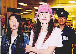 反之,頭戴粉紅帽,身穿粉紅T恤,襯于一條藍色牛仔褲的舒淇,神清氣爽地乘搭CX735抵新時,或許因未有影迷會造勢,影迷零零星星,未見熱鬧,有三兩影迷見舒大美女,喜悅地呼喚伊人的芳名,舒淇應聲望去,只是含蓄地笑笑。