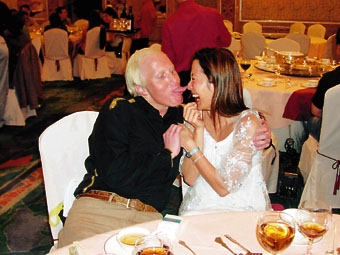 吃過了一兩道菜,楊紫瓊便逐臺去敬酒,還很豪氣要好事成雙,每人連飲兩杯。記者所見,楊紫瓊一個人也飲了差不多十支紅酒。鐘再思見女友如此高興,也拿出數碼相機拍下女友的豪情場面。楊紫瓊飲到略帶醉意,剛巧Star TV的高層在旁,他正表演伸長舌頭頂上鼻尖,楊紫瓊也學他。結果對方的舌頭頂到她的鼻尖,場面十分搞笑。