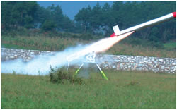 這時,指揮所接到情報,4批“敵”空中目標來襲。指揮官一聲令下,部隊迅速進入陣地嚴陣以待。“敵”第一批次的1枚巡航導彈進入,陣地上立即發(fā)射了紅外誘餌彈、箔條彈,只見空中綻開一大片如仙女散花般的紅色光亮火球,接著又是一聲炸響,一組金屬箔條干擾彈騰空而起,瞬間在150米的空中銀光閃爍,形成了一道綿密的金屬箔條網(wǎng),對導彈進行干擾。幾名戰(zhàn)士肩扛的某型便攜式地空導彈隨即發(fā)射,導彈托著長長的尾焰直撲目標而去!皵场毖埠綄椘x了目標,在預先設(shè)置的假陣地中爆炸。