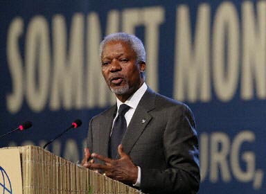 姆貝基、安南、第五十六屆聯(lián)大主席韓升洙先后在開幕式上致辭。安南在講話中呼吁,國際社會特別是發(fā)達國家應(yīng)該為地球、為未來負起責(zé)任。他說,本次會議的重點集中在人類與自然資源的關(guān)系上。目前,氣候變化、污染、漁業(yè)資源的損耗等環(huán)境問題已經(jīng)讓人無法視而不見。