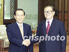 中新社北京九月三日電 (記者 朱大強(qiáng))中共中央總書記、國(guó)家主席江澤民今天在人民大會(huì)堂會(huì)見了來(lái)訪的韓國(guó)大國(guó)家黨名譽(yù)總裁李會(huì)昌一行。