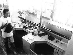 經(jīng)查,該男子曾幾次前往作案地點(diǎn),第一次出現(xiàn)時(shí)身穿一件白色廣告衫,衣領(lǐng)為小V字領(lǐng),廣告衫底部有一黑色寬條紋。作案時(shí)犯罪嫌疑人身穿白色圓領(lǐng)廣告衫,胸前有人形圖案,下身穿淺藍(lán)色牛仔褲,戴寬邊金色金屬框架太陽(yáng)眼鏡,隨身攜帶一黑底紅面尼龍拉鏈折迭包。