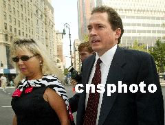 9月4日,世通公司前首席財務官斯克特·沙利文前往法庭應訴。他被指控制造假帳,隱瞞了世通公司38億美元的虧空。Ic/cnsphoto 攝