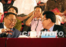 國家政協(xié)主席李瑞環(huán)八日晚在中國第三屆特殊奧林匹克運動會開幕式上,與全國殘聯(lián)主席鄧樸方親切交談。作者:宋吉河