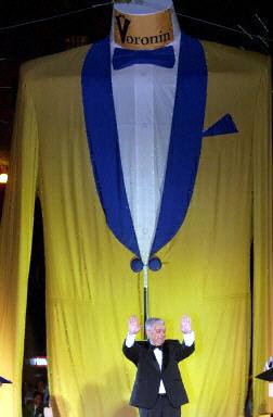 9月8日,烏克蘭時裝設計師展示世界上最大號的男士晚禮服。據(jù)悉,這件高10米晚禮服將被載入世界吉尼斯大全。