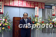 中國駐日使館新聞參贊黃星原代表武大偉大使和使館對中國新聞社成立五十周年表示祝賀。他說,中新社是中國兩大通訊社之一,成立五十年來,面向世界,開拓進取,在激烈的國際競爭中找到自己的位置,在國際上發(fā)揮了越來越重要的特殊作用。中新社長期以來為傳遞中國的信息,反映海外華僑華人的聲音,架起了中國與世界溝通的橋梁,特別是為加深中國和日本兩國人民的相互了解,為增進兩國人民的友誼,為促進兩國友好關系的發(fā)展做出了很大的貢獻。對此,謹代表中國駐日使館表示衷心的感謝。五十周年是中國新聞社既往開來、風華正茂的時期,祝愿中國新聞社在今后激烈的國際競爭中年年發(fā)展,歲歲繁榮。