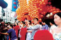 此外,出席剪彩的市政府一些高層更打趣地對城城說:這條南京街就是城城早前拍攝電影《Para Para櫻之花》的廣場大街,如今仍天天有年青人在跳Para Para舞,成為此街特色之一。城城聽后,開心不已。