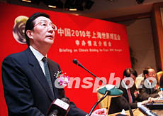 十二日晚,中國2010年上海世界博覽會(huì)申辦情況介紹會(huì)在北京舉行,上海市市長陳良宇稱對(duì)成功申辦2010年世博會(huì)信心十足。作者:盛佳鵬