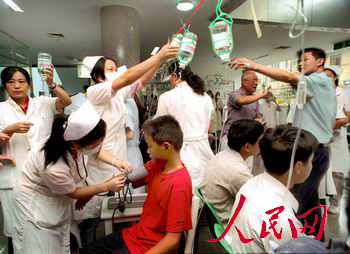 記者在八一醫(yī)院看到,標(biāo)著“中毒”標(biāo)牌的病床上,也有老人躺著。不少中毒病人的鼻孔和嘴上都插著各種管子,身上還連著監(jiān)護(hù)儀之類的醫(yī)療設(shè)備。而在病房門口,不少中毒患者的家屬圍在那里,著急地想了解親人的最新病情。(人民網(wǎng)南京9月15日電 記者顧兆農(nóng))