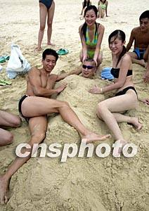 來自全國各地的35名模特選手十七日聚集海南三亞亞龍灣,參加2002新絲路中國模特大賽總決賽開賽前的最后一次選拔---“沖刺亞龍灣”的比賽。毛建軍 攝