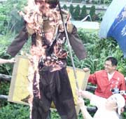 臺灣愛國同心會等團體成員上午在“立法院”門外,以鞭打畫著李登輝臉譜人偶等方式,表達對李登輝的不滿。他們要求李登輝必須為自己的“賣國”言行道歉,否則他們將效法當(dāng)初向李登輝潑紅墨水的史力行,“李登輝走到哪里,就跟到哪里”。