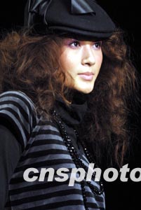 國際知名服裝品牌I.T在中國的旗艦店二十七日正式登陸上海,并于當(dāng)晚在滬舉行2002秋冬時裝發(fā)布會。圖為模特在展示I.T2002秋冬新款時裝。作者:湯彥俊