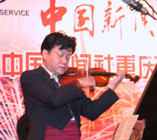 盛中國夫婦演奏的《梁!贰ⅰ吨聬埯惤z》等小提琴、鋼琴名曲把今晚的慶祝酒會推向了高潮。