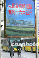 圖:北京街頭迎接“十六大”氣氛漸濃