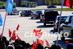22日,江澤民主席應(yīng)布什總統(tǒng)邀請(qǐng)?jiān)L問美國(guó),抵達(dá)芝加哥奧黑爾機(jī)場(chǎng),圖為江主席一行乘坐的車隊(duì)離開機(jī)場(chǎng)駛往市區(qū)。作者:王瑤