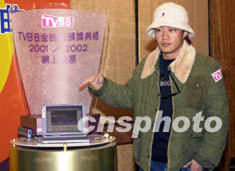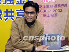 歌星蘇永康10月23日在香港出席《TVB8金曲榜頒獎典禮2001/2002》記者會,為《TVB8金曲榜頒獎典禮2001/2002》在網(wǎng)上為喜愛的歌曲投票。鄧慶樂 攝