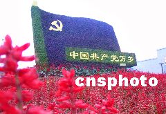 圖:“鮮花雕塑”喜迎中共十六大