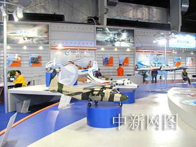 航空二集團(tuán)展區(qū),中間是暢銷全球的運(yùn)-12系列小型運(yùn)輸機(jī)。
