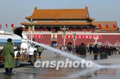 圖:清潔廣場迎接十六大