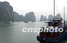 圖:風(fēng)景秀麗的越南下龍灣吸引眾多游客觀光