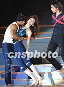 在2002年中國廣州(新塘)國際牛仔服裝節(jié)上,香港設計師俞儷軒的作品四日晚由中國名模姜培琳領銜展現(xiàn)在人們面前。作者:趙振清