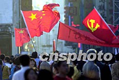 中共“十六大”即將在北京開幕,廣州大街小巷處處洋溢節(jié)日氣氛,街頭國旗、黨旗處處飄揚(yáng),喜迎“十六大”召開。作者:陳文