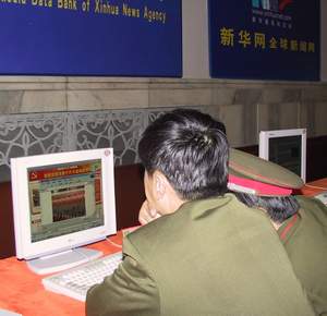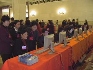舉世矚目的中共十六大今天上午隆重揭幕,步入北京人民大會(huì)堂的代表們發(fā)現(xiàn),在人民大會(huì)堂東大廳南側(cè),新增了一排專線上網(wǎng)電腦。輕點(diǎn)鼠標(biāo),官方新華社所屬的新華網(wǎng)“中共十六大”實(shí)時(shí)報(bào)道網(wǎng)頁就出現(xiàn)在人們眼前。