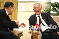 圖:林若與郭榮昌在中共十六大分組會(huì)上交談