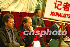 中國共產(chǎn)黨第十六次全國代表大會十日繼續(xù)舉行分組會,部分會場向中外記者開放采訪。圖為外國記者在湖北代表團會場專心聽會。作者:毛建軍