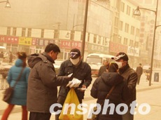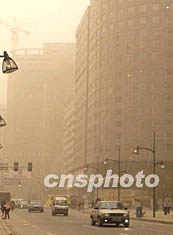 走在風(fēng)沙彌漫的沈陽街頭,只見枯葉飛旋、塵土撲面,六百米以外便是混沌一片。許多騎自行車上班的人逆風(fēng)前行,紛紛棄車改乘出租車。街上稀少的行人也都用沙巾裹住了頭部。人在室內(nèi),只聽窗外狂風(fēng)呼嘯之聲不絕于耳。