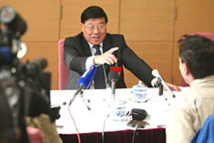 十六大代表、中共遼陽市委書記陳世南十二日在十六大新聞中心回答記者有關(guān)保障下崗工人生活的問題。作者:毛建軍