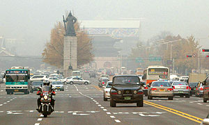 圖文:韓國漢城等地發(fā)生11年來首次秋季沙塵暴