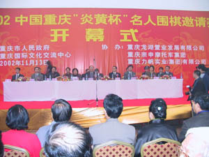 二零零二中國重慶“炎黃杯”名人圍棋邀請賽今天上午在此間正式開枰。在未來幾天時(shí)間里,來自世界各地的炎黃子孫們將在山城重慶及壯美的長江上紋枰論道,以棋會(huì)友。