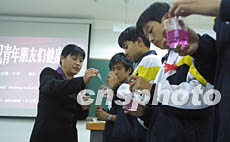 北京第二中學(xué)十一月在“青春教育”選修課中開設(shè)了《艾滋病毒與艾滋病》課程。師生們采取互動式教學(xué)法,以活潑的游戲形式,形象直觀地使學(xué)生們了解艾滋病的傳染渠道及防范的方法。據(jù)悉:北京市教育主管部門已要求各中學(xué)開設(shè)“青春教育”課程。作者:史利