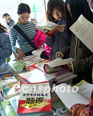 北京眾多青年人在書(shū)店選購(gòu)有關(guān)公務(wù)員知識(shí)的書(shū)籍,準(zhǔn)備參加十二月進(jìn)行的國(guó)家公務(wù)員考試。在競(jìng)爭(zhēng)激烈的現(xiàn)代中國(guó),擁有穩(wěn)定收入的公務(wù)員職位越來(lái)越受到年青人的青睞。作者:王麗南