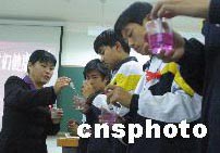 北京第二中學(xué)十一月在“青春教育”選修課中開設(shè)了《艾滋病毒與艾滋病》課程。師生們采取互動(dòng)式教學(xué)法,以活潑的游戲形式,形象直觀地使學(xué)生們了解艾滋病的傳染渠道及防范的方法。據(jù)悉:北京市教育主管部門已要求各中學(xué)開設(shè)“青春教育”課程。史利 攝`