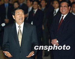 中新網(wǎng)香港11月19日電 在香港出席第十六屆世界會計(jì)師大會的國務(wù)院總理朱镕基,今天下午在會展中心會見了中央駐港機(jī)構(gòu)和部分中資企業(yè)的主要負(fù)責(zé)人。朱镕基感謝他們?yōu)樨瀼亍耙粐鴥芍啤狈结樅途S護(hù)香港的繁榮穩(wěn)定所做的工作,同時要求他們認(rèn)真學(xué)習(xí),嚴(yán)格自律,為香港的繁榮穩(wěn)定添磚加瓦。