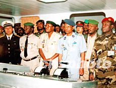 國防大學(xué)外訓(xùn)系高級(jí)指揮班三十四名外籍軍官二十一日訪問廣州艦艇學(xué)院。圖為外籍軍官在該院副院長李寧將軍陪同下參觀艦艇教學(xué)模擬訓(xùn)練中心。作者:庹新國